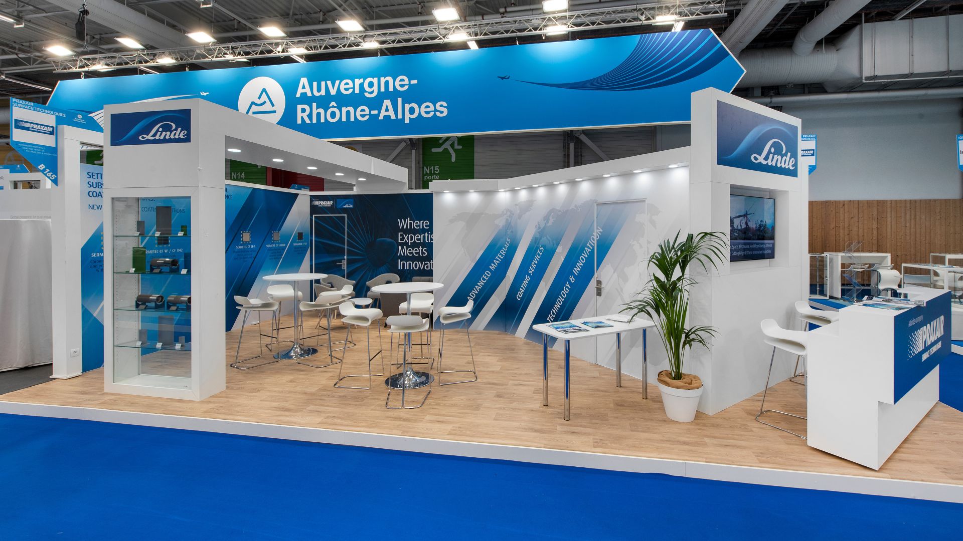 Expace a conçu un espace clair, structuré et identifiable, favorisant à la fois la lisibilité institutionnelle de la CCI et la singularité de chaque exposant. Les zones d’échanges ont été pensées pour allier confort et efficacité, dans une ambiance dynamique mais maîtrisée.