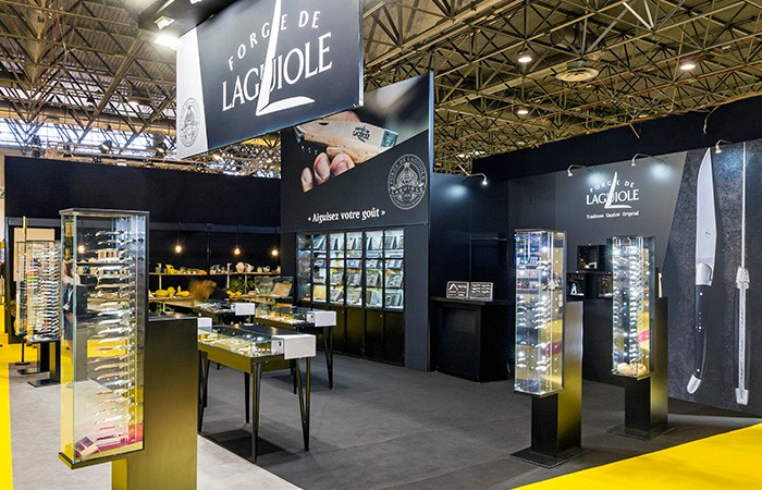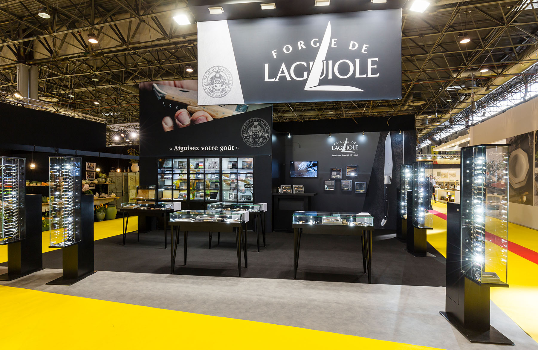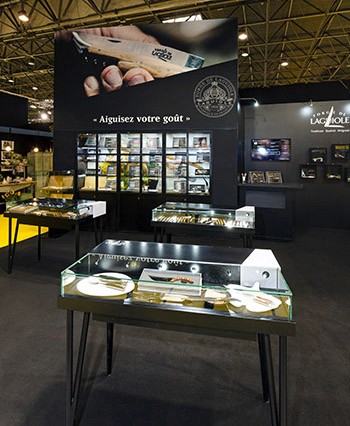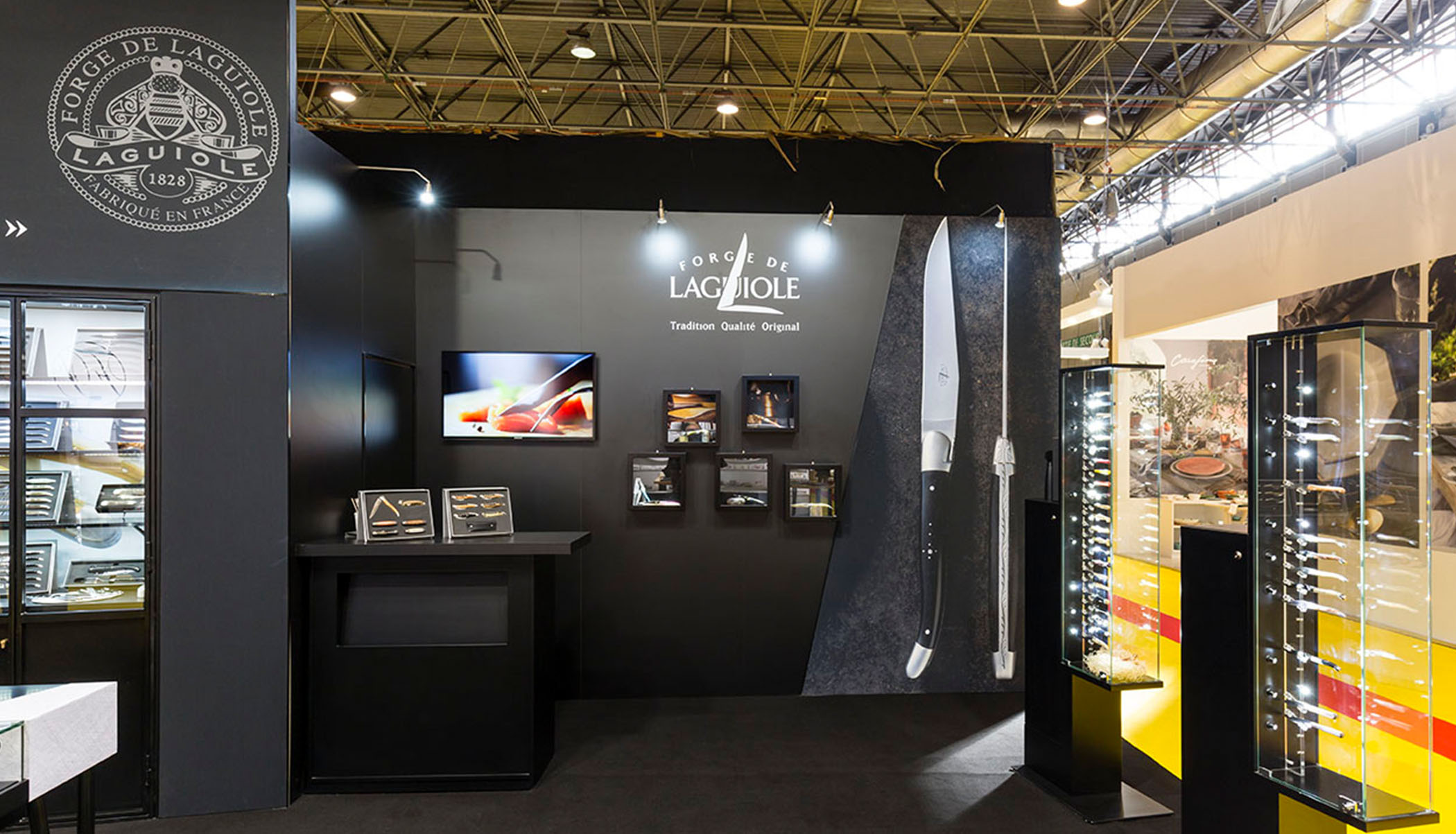 At the heart of the show Maison & Objet in Paris, the Laguiole stand perfectly illustrates the alliance between tradition and innovation. Designed to capture the attention of visitors, it highlights the excellence of French cutlery through modern displays, careful lighting, and luxurious showcases. It is a place where every detail tells the story of craftsmanship and where the customer experience is enhanced.